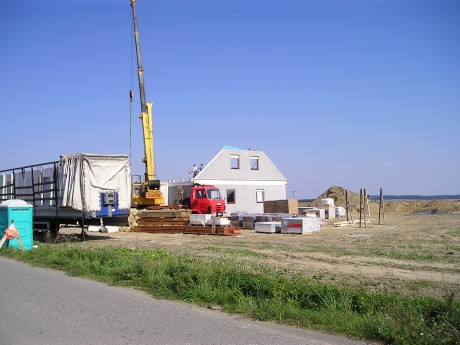 Když se stropy oizolovali, tak šly první stítové stěny.