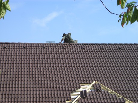 Komín se taky tmelí...asi aby neuletěla ta stříška :)