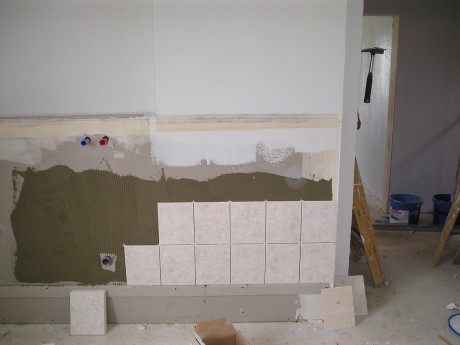 Obkládačky v prádelně budou i v kotelně, ale nějak jsem nevystihla ten odstín, myslela jsem že budou více ladit s dlažbou, zatím co tohle je spíše hnědo bílý mramor :(