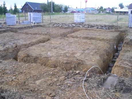celkový pohled na vykopané základové pásy, dnes je konec práce a my poprvé máme dost